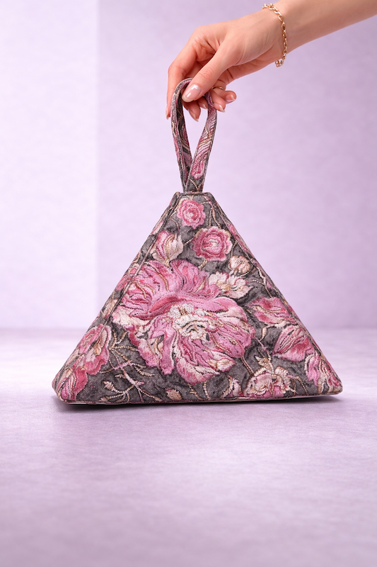 Trabajamos con jacquard, terciopelo, encajes y tejidos con textura para crear bolsos de fiesta elegantes y sofisticados. El interior incorpora detalles cuidados y un pequeño elemento distintivo que forma parte de la esencia VEGA.