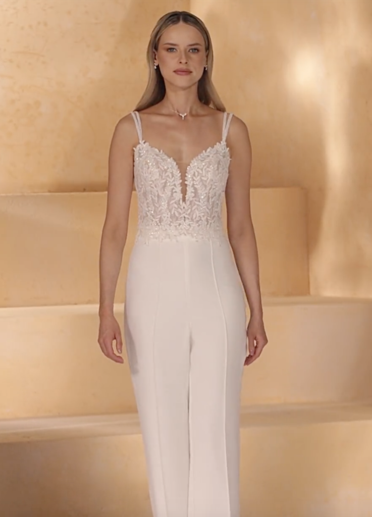 Ya tenemos el pantalón de novia en nuestra tienda. Hay dos opciones la falda-pantalón y el pantalón que unidos a multitud de cuerpos te va a ser difícil elegir.